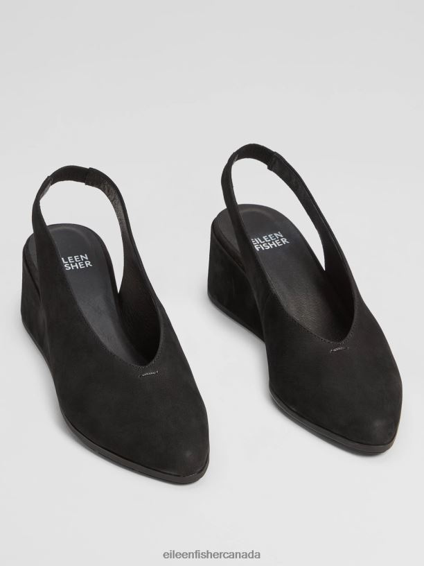 EILEEN FISHER Devi Tumbled Nubuck LeatherSlingback Women BLACK Shoes 024FN1078