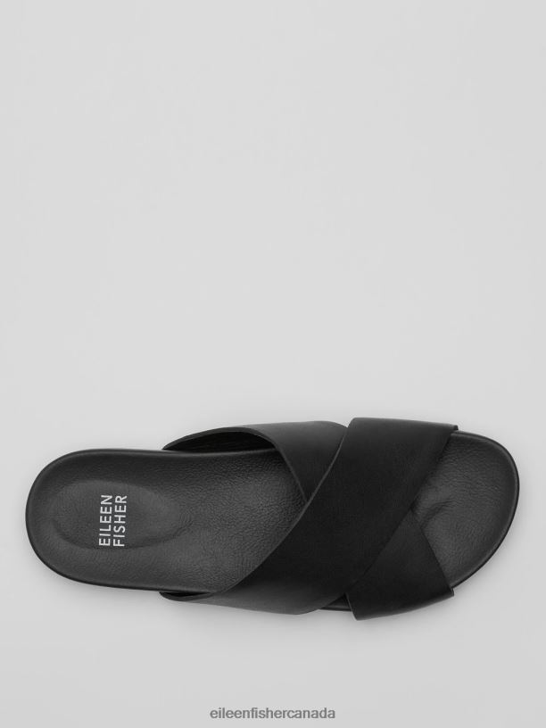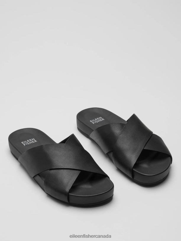 EILEEN FISHER Bond Crossover Leather Sandal Women BLACK Shoes 024FN1043